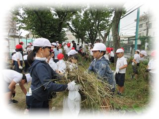 草取りをして、運動会に向けてきれいな学校環境をつくることを目指しています。