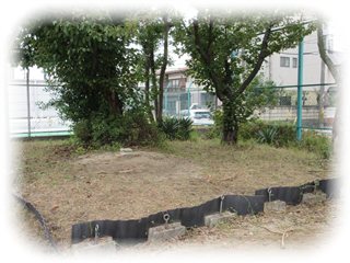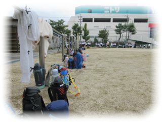 準備のために、一番に運動場に出て、各学年の担当場所を確認していました。