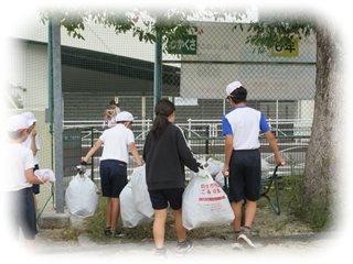 次々にいっぱいになる袋に、美化委員は忙しく走り回って集めます。