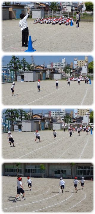 この時間は、学年のみんながそろって、徒競走の練習です。