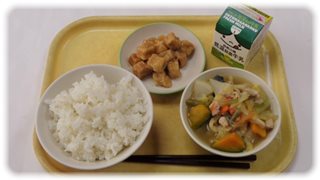メニューは、冬至鍋、高野豆腐のあげ煮に米飯、そして、牛乳です。