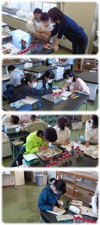 テーブル上には、透明で筒形のケースがずらりと並び、子どもたちがそれを観察していました。