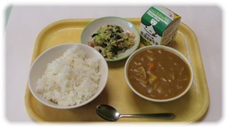 ポークカレー、海藻サラダ、米飯、牛乳