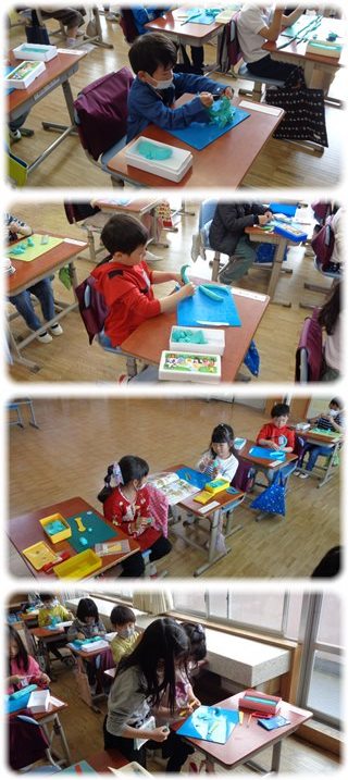 好きな動物の姿を思い浮かべながら手を動かす子どもたち。