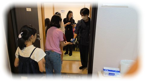 こどもたちが入るときは、一人一人手の消毒をしてくださいました。