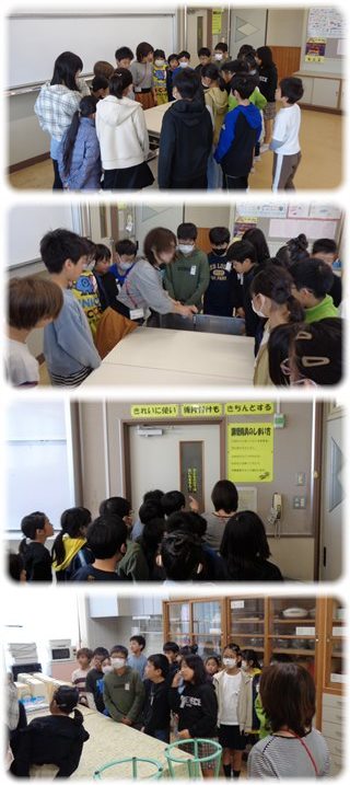 家庭科を担当する教師と対面し、学習を始めた子どもたちが、実習で使う「家庭室」へ入っていきました。
