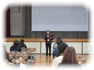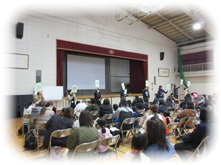 こどもたちが受診している間、体育館では、保護者の皆さんに対して、四日市市特別支援教育コーディネーターから、小学校生活に向けて、家庭でのこどもへの関わりなどについてのミニ講話を行いました。