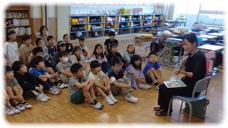 今日の“図書ボランティア”さんの読み聞かせは、3年生の教室で。