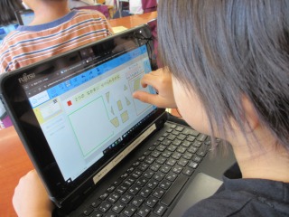 子どもたちがタブレットを出して、形をなかま分けしていました。