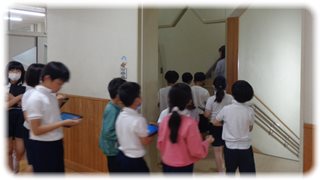 子どもたちの学習を見ながら4階まで行くと、3年生が教室から出てきて、階段を‥‥上っていきました。