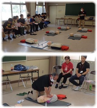 健康観察や準備運動、休息、安全確認等々、事故のないように十分な手立てを講じて水泳の授業を進めるのは当然ですが、もしものとき、一つしかない大切な子どもの命を守るため、毎年講習会を開いて訓練しています。