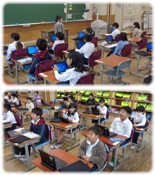 読み聞かせを楽しんで階段を降りていくと、1年の教室から歌声が聞こえました。