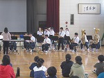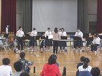 演奏の途中に曲に合わせて楽器別に立ったり座ったり、手拍子をしたりと