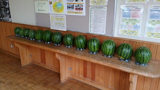 最後のスイカの受粉は6月の終わりでしたから、少し早すぎるものもあったのですが、わずかな雨の止み間に、収穫をしました。目標の数には全く届きませんでしたが、全校のみんなが食べるのに必要な大玉10玉は収穫できました。1学期終業の日に大掃除の後、子どもたちに食べてもらいたいと思っています。