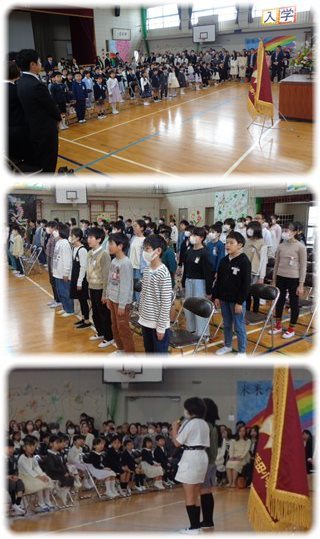 「一同礼」「開式の言葉」で式が始まり、式次第は「国歌斉唱」「校歌斉唱」へと続きます。