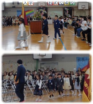 新1年生が、保護者の皆さんと在校生、職員の拍手に迎えられて入場してきました。