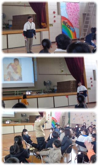 3,4人の子が前に出て、写真が映されると、とってもかわいらしく、愛らしい子どもの姿や表情に、まずはここで歓声があがりました。