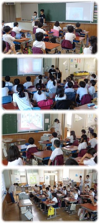 今日は、4年から6年の教室で。