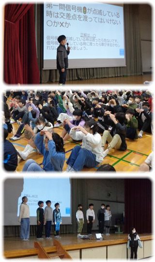 運営委員会の子どもたちが問題をスクリーンに映し、“〇×クイズ”で、休み中に気をつけることをみんなで確かめました。
