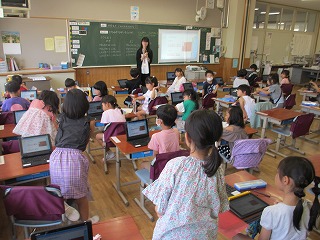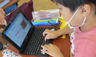 実際に測ってみました。何で測ったか、いくつ分だったかをタブレットに書き込みます。タッチペンを使えば、1年生でも入力することができます。