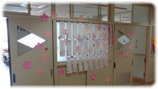 教室と廊下を仕切るパーテーションに、短冊がずらりと並んでいました。