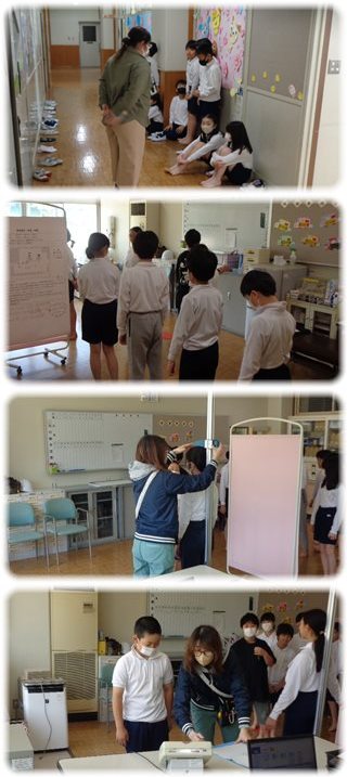 これから、視力と聴力は教員が測定しますが、尿検査は学校薬剤師に、内科、歯科、眼科、耳鼻咽喉科は医師にお世話になって、子どもたちの健康状態を診ていただきます。