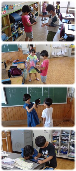 クラスの友だちとたくさん触れ合って楽しみながら、タブレットのカメラ機能と“発表ノート”の使い方も上達。