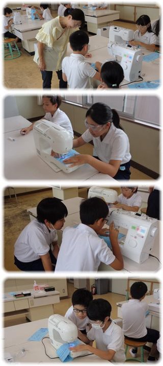 家庭の学習で、針と糸を使った裁縫に取り組んだ5年生は、2学期は、ミシンを使ってエプロンを仕立てます。