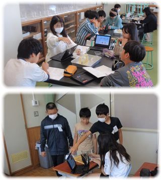 1組は理科室で、“水溶液の性質”の実験に、2組はイングリッシュルームで、“英語クイズ大会”に向けた役割分担とリハーサルに取り組んでいました。