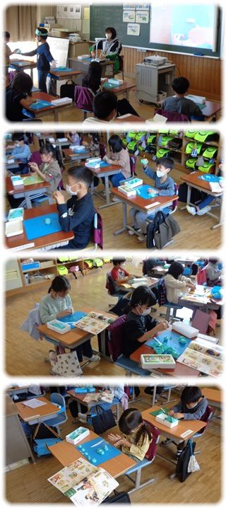 図工の時間、1年生が粘土をこねこねして作っていたのは“ごちそう”です。