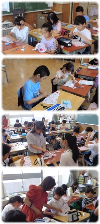 子どもたちは、できあがった子や得意な子、教師の助けも受けながら、慎重に針を運んでいました。