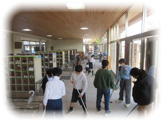 私も負けてはいられないと、昇降口の外側を掃除していると、下級生のこどもたちが、「手伝いたい!」と申し出てくれて、次々に掃き掃除の輪が広がっていきました。