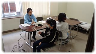 ヘッドホンを耳に当てて音が聞こえたらボタンを押すことで、聞こえているかどうかを検査します。