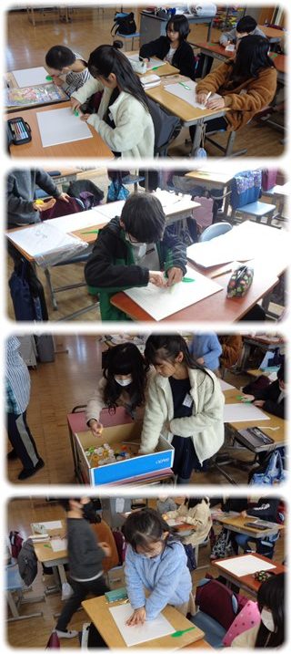 3年生が図工で、白くて柔らかい「スチレン」を版にした、版画づくりに取り組んでいました。