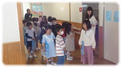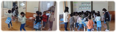 担任の使う座席の周りに集まって、誰がいるのか、どんなことをするところか、担任の話を聴いて出ていきました。