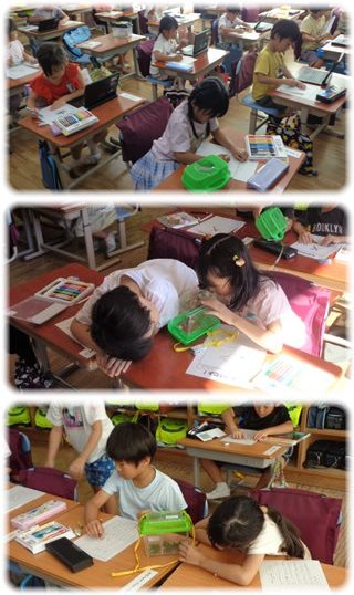 虫の動きを追いかけていって、自然に顔と体が横になってしまう子も。