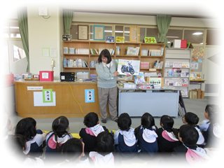 図書室の説明に続いて、本の読み聞かせがありました。