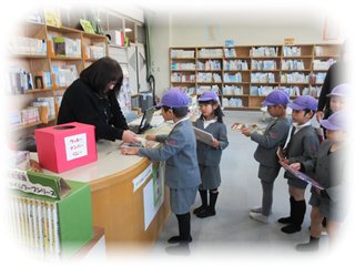 きちんと整列して、静かに自分の番を待ち、自分の番になると本を差し出して「この本貸してください」と言い、処理が終わると「ありがとうございました」