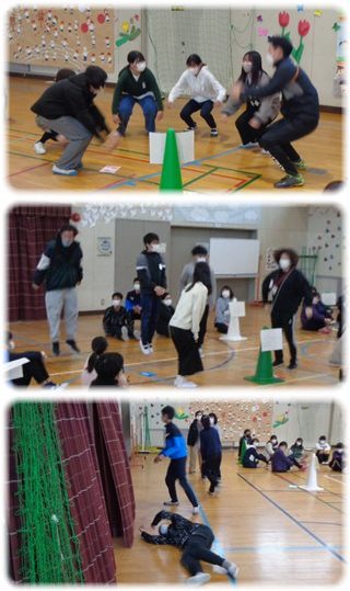 2つのグループが指名され、始めに呼ばれたグループが命令の番号を指定し、後から呼ばれたグループの人たちはその番号の命令に従う、というもの。