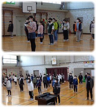 6年生が、私たち職員を体育館に招いて“感謝の会”を開いてくれました。