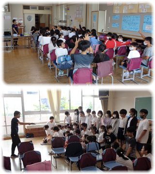 バス車内の座席のようにいすを並べ、実行委員が全体を仕切りながら、バス車内の活動や行動、見学先での動きを、いすを並べたところをバス車内に、教室の後ろを集合写真の撮影場所に見立てたりしながら、当日のスケジュールや活動内容。それぞれの場所、場面で気をつけることなどを確かめていました。