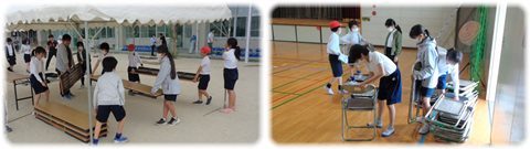1年生から4年生までの子どもたちが下校した5時間目、5,6年生と職員で、運動会の準備作業を行いました。