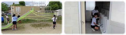 ◇観覧に来てくれる皆さんのために、トイレを掃除し、遊具を固定。