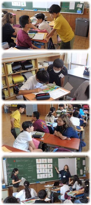 教師と一緒に、2学期の学習の見通しを持つために計画を確認した後、夏休みにしたことや思い出を英語で伝え合う活動へ。