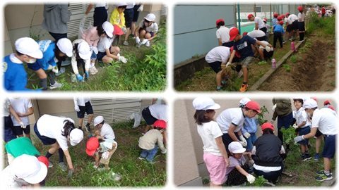 根が張った芝のような草はなかなか抜けないので、抜くというよりむしり取るようにして草を取っている子もいましたが、みんな、軍手をはめた小さな手をせっせと動かして、草を取っては白いごみ袋にそれを入れていきました。