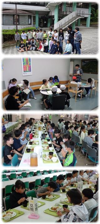 日中の活動を終えた子どもたちは、学級ごとに集合写真を撮って自然の家の中へ。