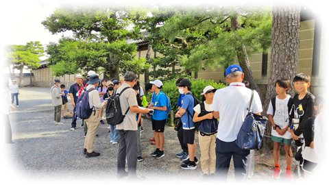ひとつめの目的地、二条城に着いたところで班ごとにガイドさんと顔合わせ。