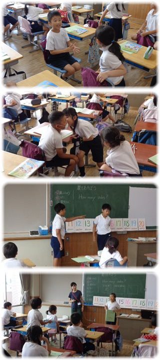 3年生は外国語活動で、数を数えたり唱えたりする活動をとおして、英語の「1」から「20」までの数の言い方を身に付けています。