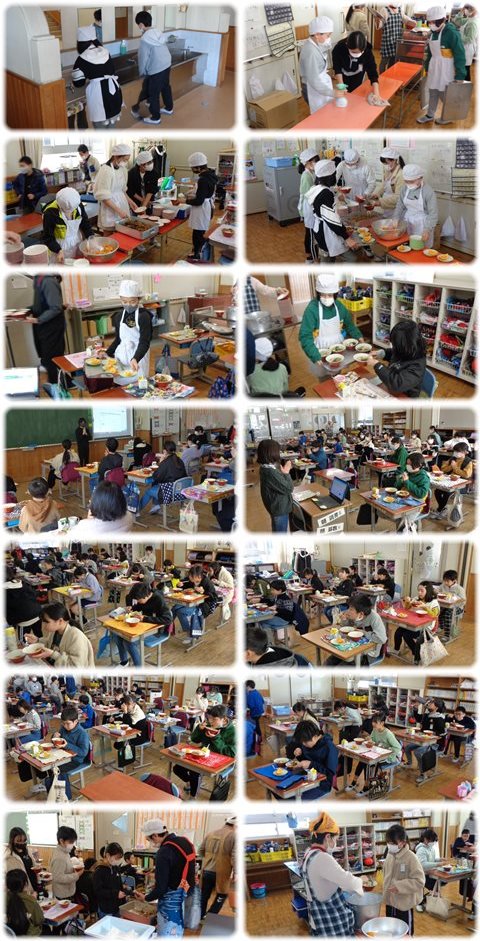 三重県産の食べものは、キムチビビンバの米、豚肉、にんじん、たけのこ、スープのぶなしめじ、豆腐、白菜、わかめ、そして牛乳とデコポンです。