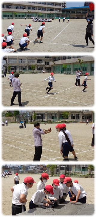 今度は、計測を終えた子どもたちが目標となって走ります。